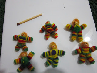 Also made these little felt dolls from a tutorial by Wendy Craig.  For the body of some dolls I used pompons instead of rounds of felt.