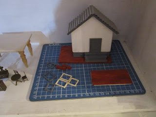Leaving aside all my pending projects, I started, with much pleasure and fun, making the 1:48" cottage, waiting to see your reactions., which were many and very kind and encouraging. This cottage is my giveaway, expressing my gratitude to you all. The exterior can be displayed as it is and the interior will be left to the winner to do. The first floor can be a kitchen/sitting room, the second a bedroom or whatever crosses the winner's mind.