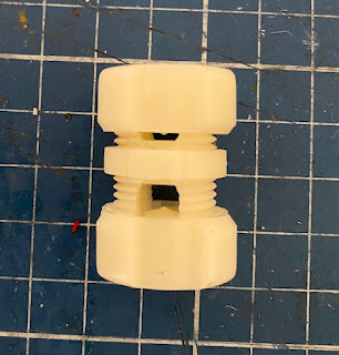 I am also back to working on my mini Zen garden project. In my stash, I found two small gadgets which I purchased years ago at a hardware store. They are supposed to connect washing-line ropes. With a touch of Jesso and a wild imagination, I hope to turn them into Japanese stone garden lanterns.